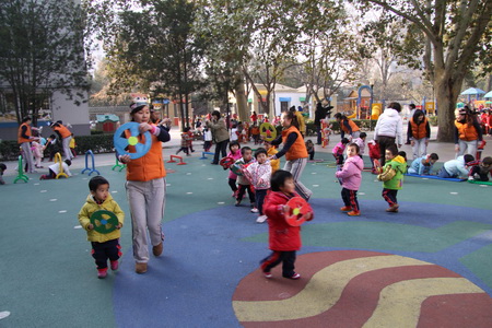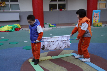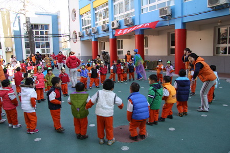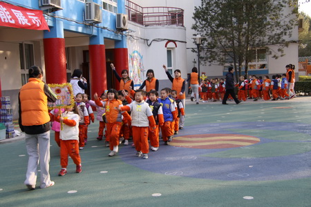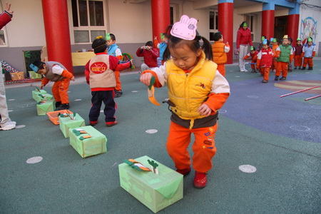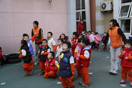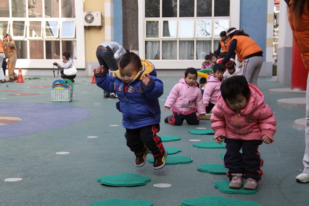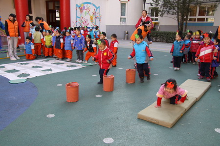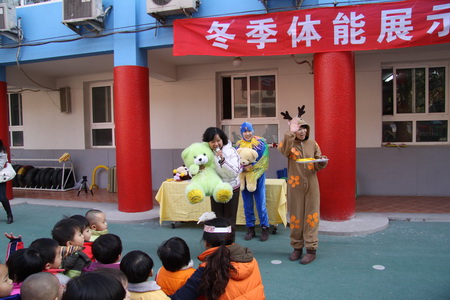 12月第一周,日托部先后组织完成了婴、小、中、大四个年龄段幼儿的冬季体能展示。在活动组织过程中既体现了教师对幼儿年龄特点的把握,活动的精心设计、精心安排,又很好地营造了幼儿冬锻的氛围,激发了幼儿的冬锻热情。四场展示都集中体现了幼儿在活动中的自主性,但同时又各有特点:婴小班针对其年龄特点,在组织中凸显了游戏性、情境性,始终以角色与情境贯穿整场活动,孩子在活动中充分享受着运动及角色扮演的乐趣;中、大班分别以拍球、跳绳作为体能展示内容,在开放区域活动中涉及到拍球、平衡、爬、滚、跑、跳等多种动作发展,项目安排多样、全面、有创意,幼儿在活动中不仅着体验运动和成功的乐趣,也发展了等待、合作、坚强等良好个性品质。