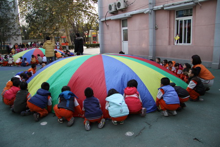 全班一起用彩虹伞玩蒙古包