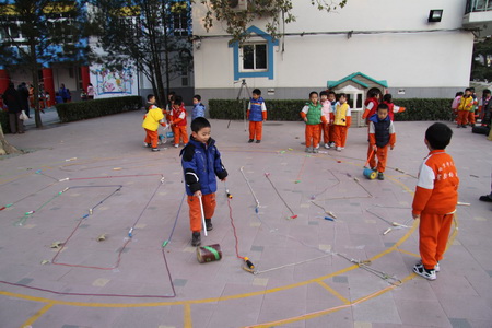 走一走用跳绳摆成的迷宫,也是一种新奇的体验哦!