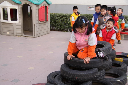 挑战高高的“轮胎阵” !