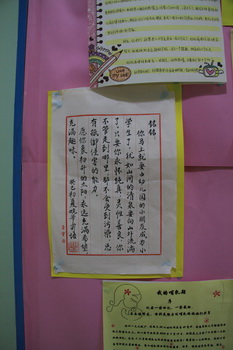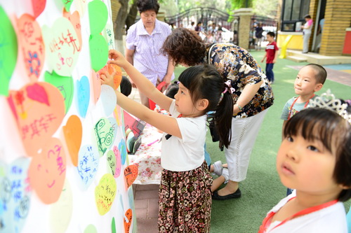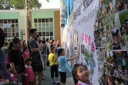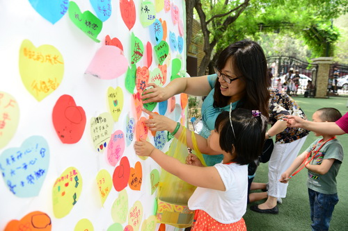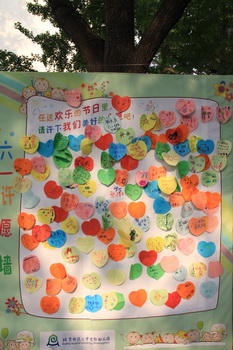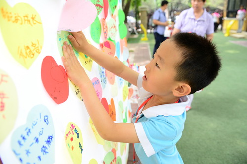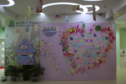 根据总部确定的“爱”的主题,校本部园将今年的六一主题确定为“感受爱、珍惜爱和付出爱”,六一儿童节前期,我园首先通过“爱的印迹”大型摄影展、“爱的长廊”书信绘画展、“爱的宣言”墙以及班级主题墙等活动,引导孩子和家长通过多种表征形式去表达爱,在全园师生家长的共同努力下,创设出爱意浓浓的节日氛围。