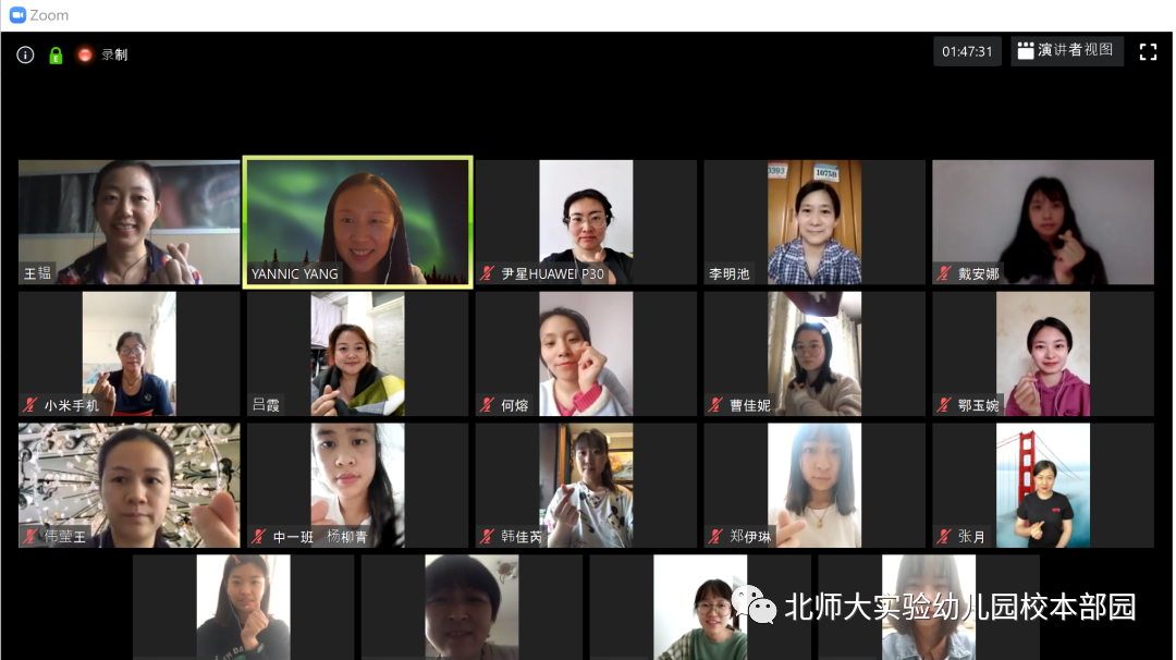 在业务园长滕瑾老师和两位小组长的组织下,吴岩老师、杜欣老师、金瑛老师的师德故事娓娓道来,杜军园长、江克玲主任的师德感悟画龙点睛,老中青几代实幼人的爱与奉献、创新与使命得到了很好的诠释,也展现了百余年来实幼人在师德方面的传承与发展。