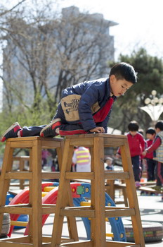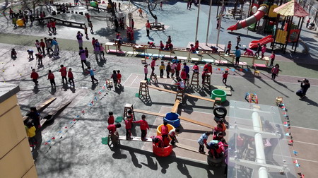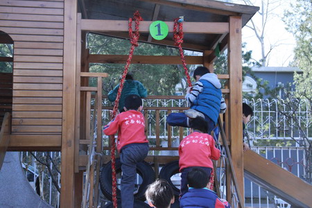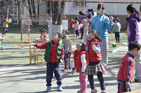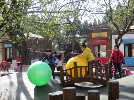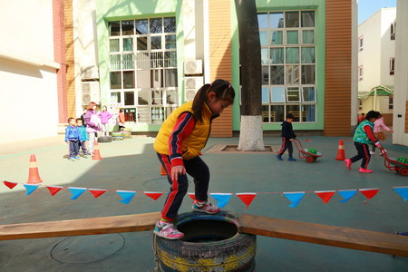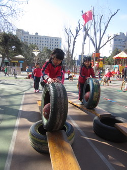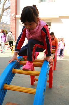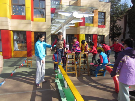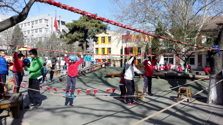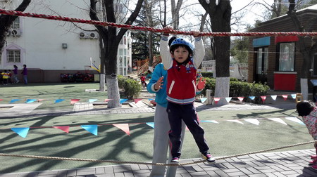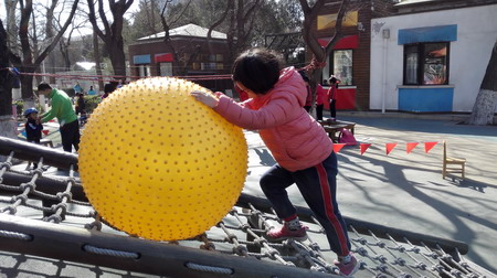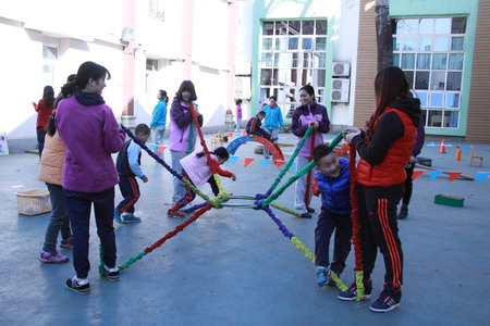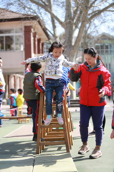 3月23日、24日上午,春光明媚,全园幼儿按小、中、大年龄分成三场参加活动。在本次活动中九游增加了幼儿上臂力量的项目《极限挑战》,此项目需要拉绳索上滑梯,吊臂悬垂过关;九游增加了发展幼儿综合体能,有一定挑战性的项目《激情闯关》,平衡、钻、爬、跳等各种动作都能在此项目中得到锻炼;九游还设置了《漫步云端》,让幼儿戴上头盔,手抓上绳索,脚踩下绳索过关;九游还提供了一物多玩的彩虹绳------,丰富多样的活动与材料吸引着孩子们。
