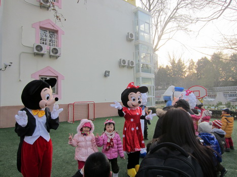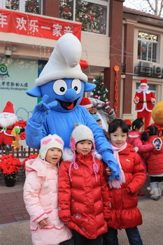 一大早,来园的孩子和家长首先被院子里造型各异、活泼可爱的卡通人偶吸引住了,梦想中的童话角色点燃了孩子们的参与热情,在与之或合影留念或翩翩共舞的亲密接触中,快乐的一天开始了!