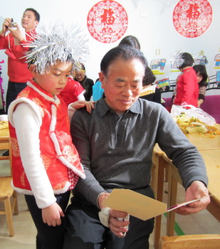 捧着小朋友亲自制作的新年贺卡,幸福和喜悦洋溢在脸上