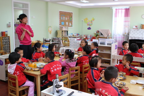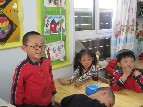 大班的孩子们踊跃表达对幼儿园的生日祝福