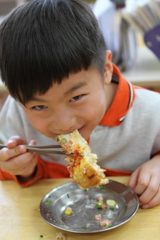 食堂的叔叔阿姨们精心准备了好吃的披萨