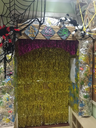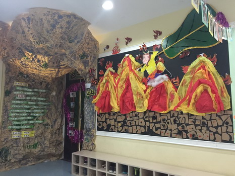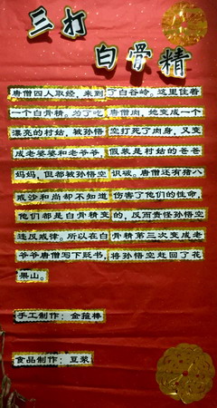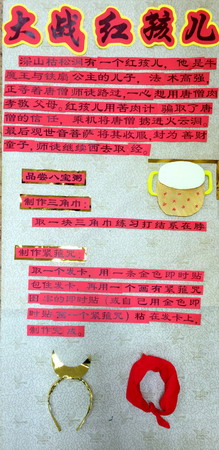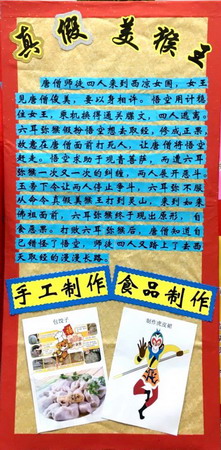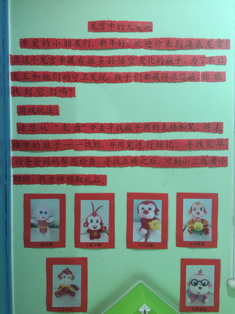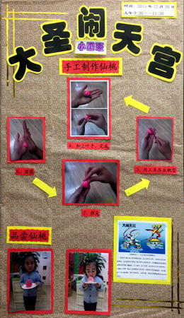 在这里,老师和孩子一起设计完成了花果山、水帘洞,一起绘制了“大画西游”的版画,13个班级在老师和孩子的手中华丽变身,成为演绎各种故事的盘丝洞、无底洞、百谷岭、五庄观……在新年活动时,它们又会成为各具特色的取经关卡。孩子们将会在通关文碟的指引下,去领略《西游记》中的风景、故事、美食,去体验别具特色的“取经”,去感受与众不同的七十二变。