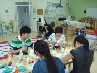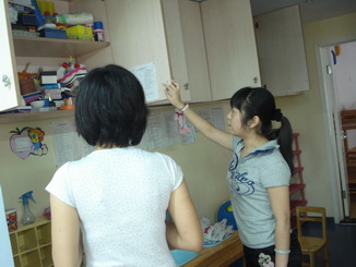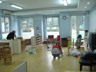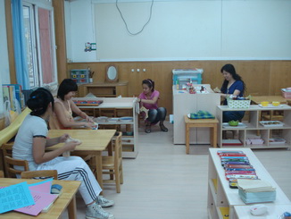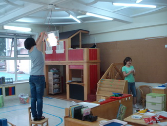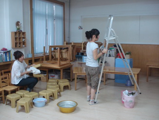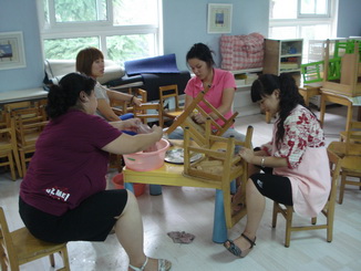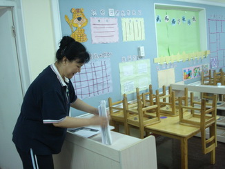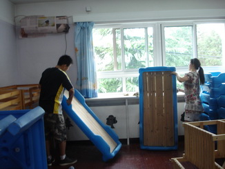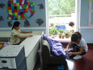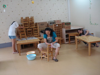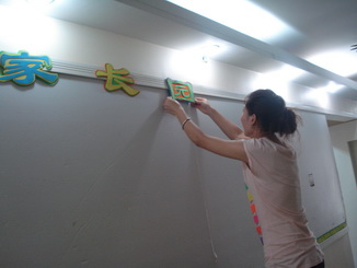 老师们在给孩子们准备开学的环境,等着孩子们来呢!