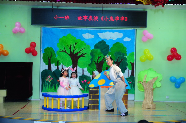 婴一班师生同台演出改编版的《小兔乖乖》
