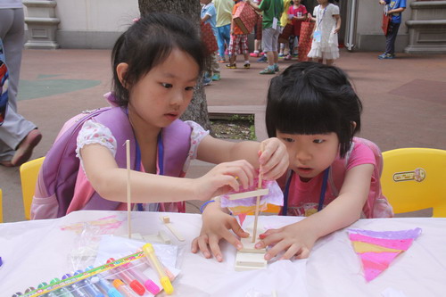 热闹的手工创意区活动现场