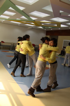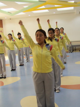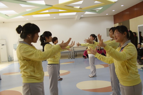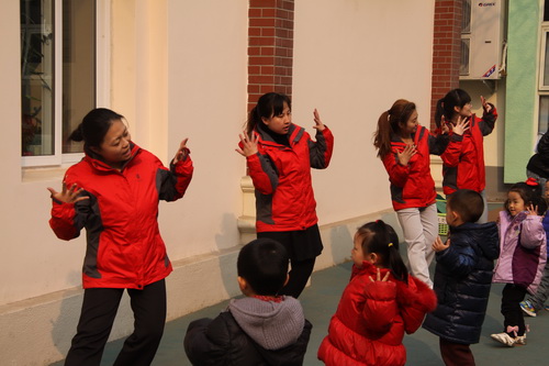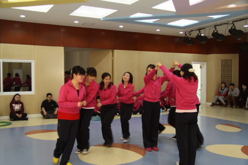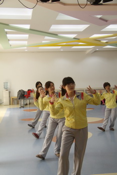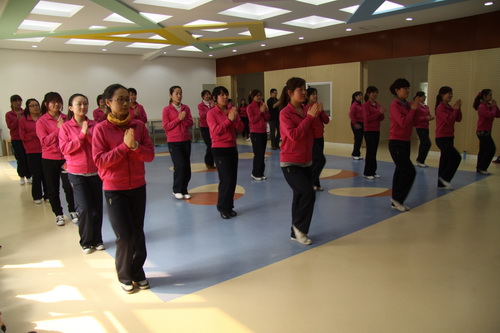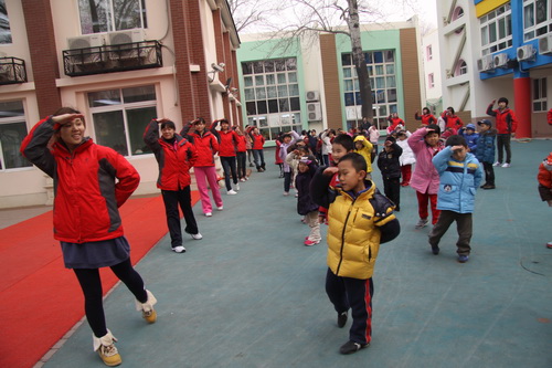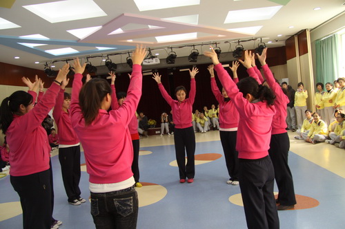 2012年2月28日中午,我园助理以上的教师在多功能厅进行了新操会操活动。活动前,杜园长跟教师强调了早操锻炼的重要意义,并希望大家在会操和带操过程中拿出百分之百的热情和状态,为幼儿做出最好的榜样示范作用。随后,在体育专职徐超老师的主持下,各年级组按照年级组长介绍新操特点和编排思路、教师集体展示新操以及其他教师发表意见和建议的程序,完成了会操活动,各年级组充满活力与童趣的新操也不时赢得台下教师的阵阵掌声。