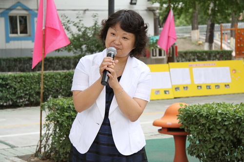 杜园长欢迎全园小朋友们回到幼儿园大家庭