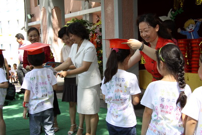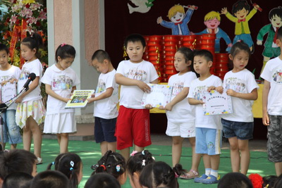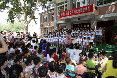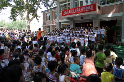 2009年7月3日本园全托部教师和幼儿,以及毕业生的家长齐聚在一起,为即将毕业的小朋友举行了隆重的毕业典礼。