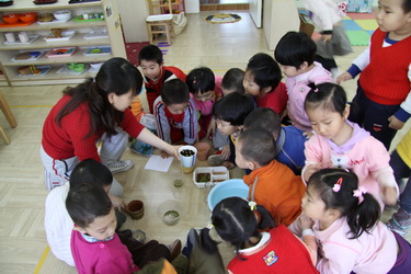 “清明前后,种瓜点豆”。伴随着春天脚步的越走越近,各班的种植活动也进行得丰富多彩。为了激发孩子们都豆子的兴趣,小一班在种植活动之前给孩子们讲了故事《会跳的小豆子》,之后结合对各种豆子的认识进行了种植。托五班结合孩子们的兴趣将种植做成主题活动,种植前的种植箱装饰也变成了孩子们踊跃参与的活动。