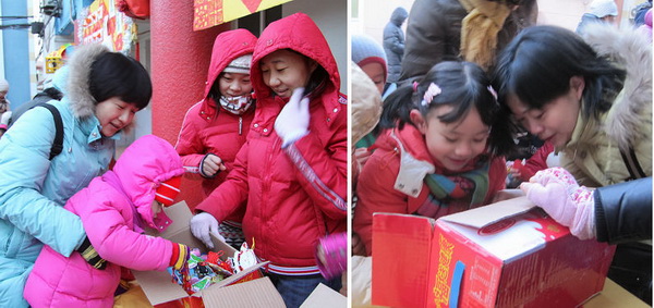 在孩子们的期盼中,猜灯谜的日子来到了。尽管12月23日、24日的早上非常寒冷,但家长和孩子们赏花灯、猜灯谜的热情却格外高涨。火红的灯笼下,一张张天真的笑脸、一个个凝神思考的神情,凝聚成一幅幅温馨生动的画面。兑奖处前人头攒动,快乐,在孩子们猜中谜底的兴奋和拿到奖品的满足中荡漾开来……
