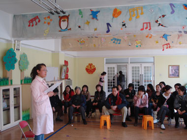 新学期伊始,我园开展了针对全园幼儿家长的卫生保健宣教工作。每位保健医分别深入到各班,向幼儿家长介绍了儿童春季传染病的预防、儿童体能测试和儿童口腔保健等方面的知识。各班幼儿家长都积极配合,参加人员达600多人次。通过这次活动,家长较详细、全面地了解了幼儿的卫生保健知识以及幼儿园在此方面开展的工作,促进了家园互动,增进了彼此的了解。