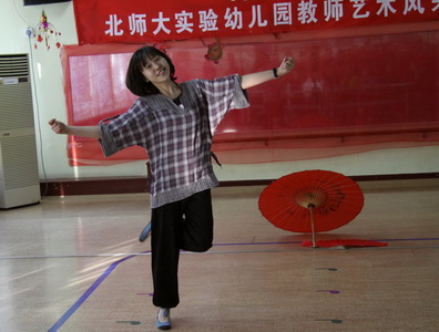 韩丹老师表演的《伞扇舞》身形并茂,受到专家评委的高度评价