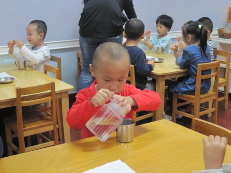 良好的一日生活常规是幼儿有效学习和活动的基础,开学第一个月是建立和巩固常规的重要阶段。在此期间,全园教师都是十小时工作制,结合各班之间的常规观摩和相互学习,保证了常规建立的科学性和有效性。在自然、有序的氛围和教师的精心组织下,孩子们的幼儿园生活丰富而多彩!