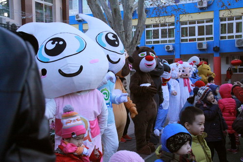 吉祥物“奇奇”“妙妙”给孩子们送去了新年的礼物