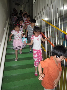 下午警铃响起,杜园长紧急广播疏散通知,各行政部门迅速到位,在各班老师的指挥下,孩子们首先躲到墙角、桌下,随后沿急疏散通道迅速撤至安全地点,在1分44秒时间内,全园师生完成了安全撤离,整个演习活动取得圆满成功。在幼儿园院子里,后勤主任江老师向孩子们提出了一些有关地震逃生的问题,从孩子们的精彩回答中可以看出,孩子们已经积累了一定的安全逃生知识。
