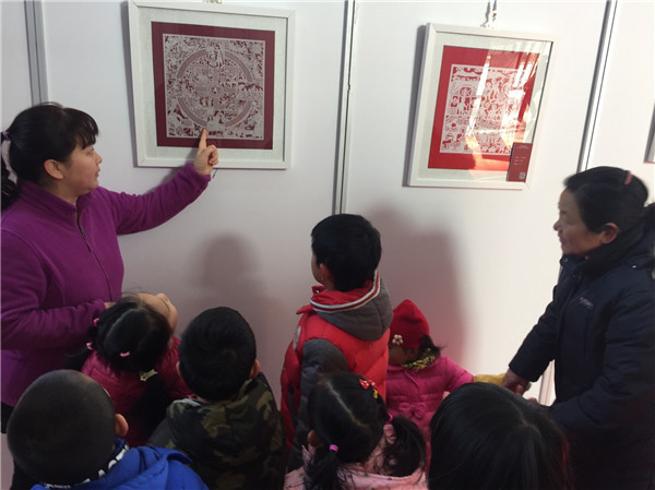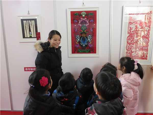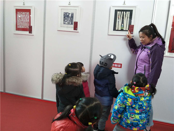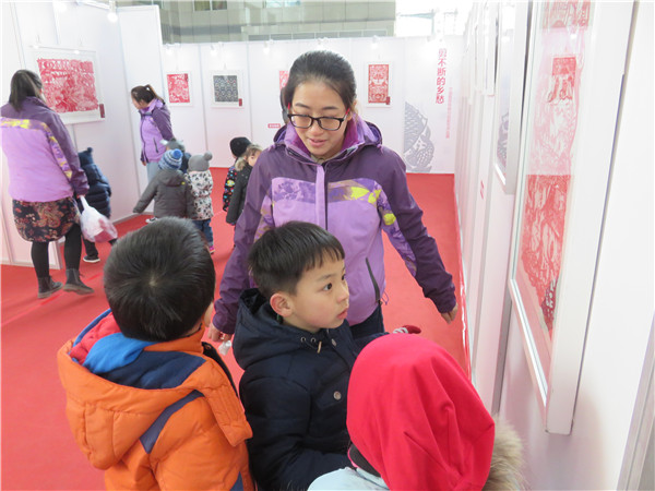 同时,幼儿园老师精彩的作品解说不但让小朋友们听的入迷,也吸引了前来看展的游客驻足倾听。