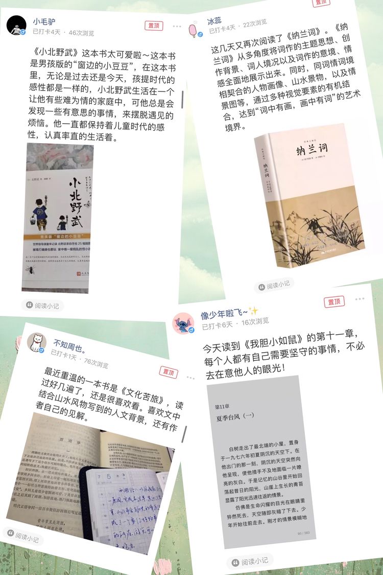 老师们将每天阅读的其他书的感悟或摘录记录下来,分享在阅读小记中。