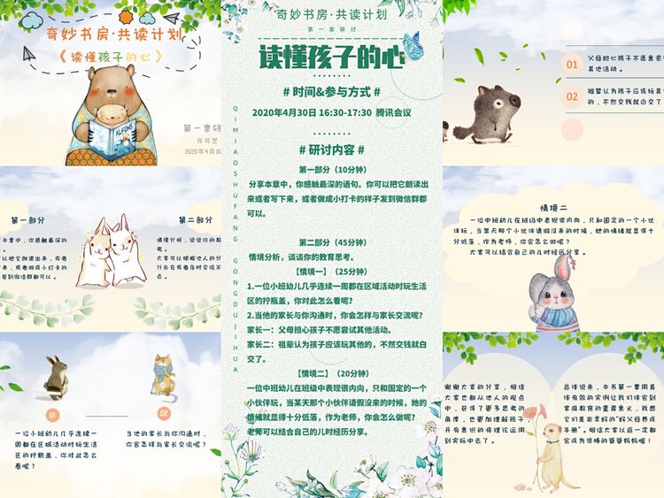 根据共读时间和书籍目录,九游制定了具体的共读计划,大家开始行动起来啦!九游依托小打卡程序,开设了《读懂孩子的心》、阅读小记、图书推荐、其他资源四个主题。
