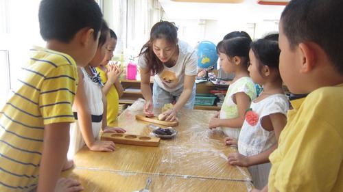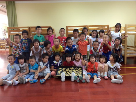 和老师,同伴一同制作月饼