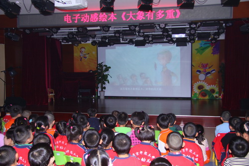 孩子们欣赏咕噜熊的电子绘本《大象有多重》