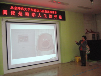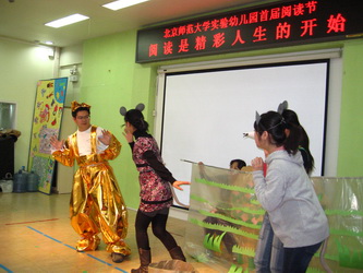 上午,伴随着杜园长的宣布,阅读节正式拉开了帷幕!首先是由园长和主任们给孩子们讲故事,经典、有趣的故事加上声情并茂的讲述让孩子们听得意犹未尽。接着,阅读组的老师们又为孩子们表演了精心编排的绘本剧《喵呜》,诙谐幽默的表演不时激起孩子们开心的笑声,这就是阅读的乐趣、故事的魅力!