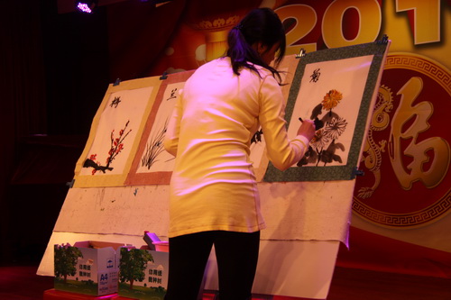 王红丽老师的现场作画《梅兰竹菊》
