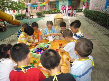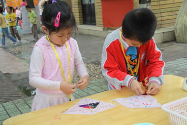 制作风车热闹的现场