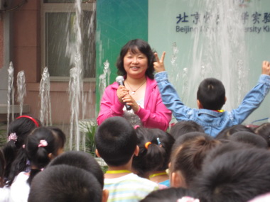 杜园长和孩子们一起念“我的六一我作主”