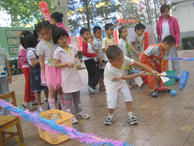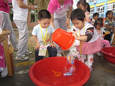 下午,婴小班的孩子们在老师们的带领下也充分体验了自主参与各项游艺活动的快乐,偶尔降落的零星小雨更将小不点孩子参与活动的可爱与温馨浪漫化。根据婴小班孩子的年龄特点,所有的游艺活动都进行了简单的调整,以期更加适合小孩子的年龄特点。孩子们在老师的带领下玩的不亦乐乎,每一个收获颇丰的孩子脸上都洋溢着兴奋与开心。
