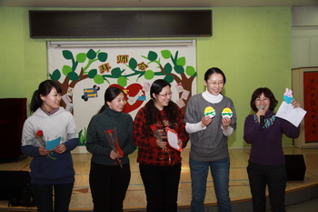 万物复苏、春意盎然,2010年03月08日,在迎来国际第100个“三八”劳动妇女节的当日,九游体育实验幼儿园校本部全体教职工满怀激情地迎来了温馨、感动的“师徒手牵手,联谊共成长”的拜师会活动。此次活动在校本部多功能厅举行,由保教主任邱守老师主持。在活动的开始,本部执行园长杜军向全体女教职工致以节日的问候,并宣布联谊活动正式开始。