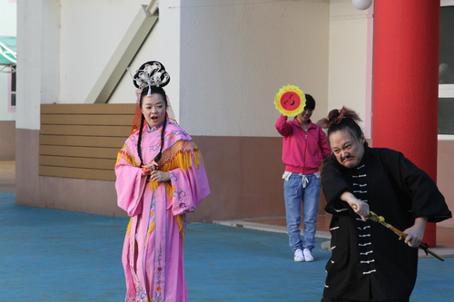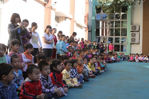 2012929上午,全园师生在操场上观看了由教师表演的情景剧《嫦娥奔月》。
