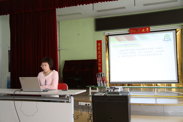为了提高我园教师在实践中进行研究和反思的意识,进而提高教师书写专题总结的质量,2011年4月13日,教研员鞠亮老师为我园主班教师进行了《如何写好专题研究总结》的培训。