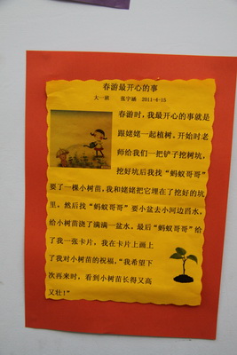 为了鼓励孩子们在春游活动中进行有目的地观察和创造性地表现,春游之前我园还发起了征集亲子春游摄影、绘画、游记作品的倡议,号召孩子们积极关注和表现春游中的见闻和感受,使之成为春天里永不褪色的记忆。