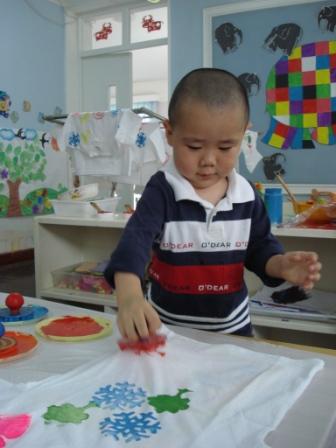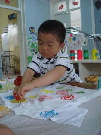 婴班幼儿用拓印的方式进行自绘T恤