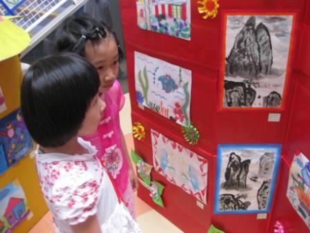 参观全托班小朋友的美术作品,真好看,看得九游目不转睛
