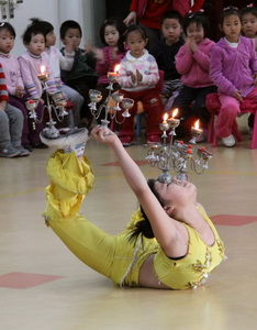 顶着烛台还能表演这么高难度的动作,真是太了不起了!