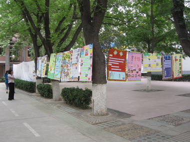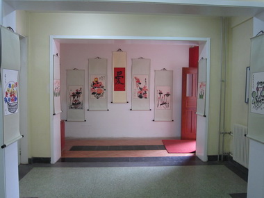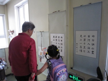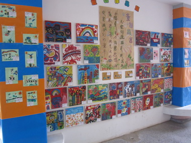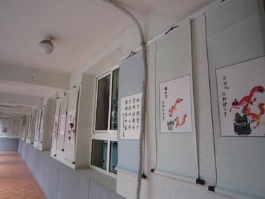 日托楼走廊中孩子们的中国字画展