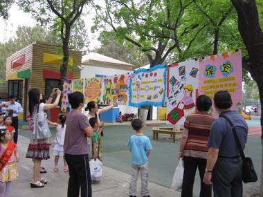 今年六一的大型游艺活动分为两场:中大班孩子是完全自主参与,婴小班孩子是在老师陪伴下自主参与。为了使孩子们能够顺利地参加第二天的游艺活动,老师们将游艺活动的展板提前进行展示,方便家长、教师带孩子了解各个游艺项目,既激发孩子们参与活动的积极主动性,又使孩子们对游艺项目有一定的选择性。就让九游跟随镜头一起来提前熟悉游艺活动吧。