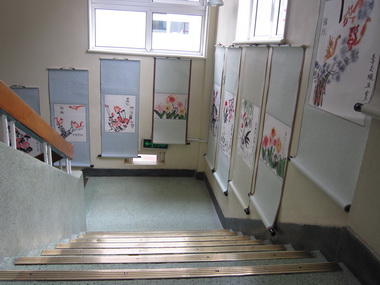 日托楼楼梯侧墙的字画展