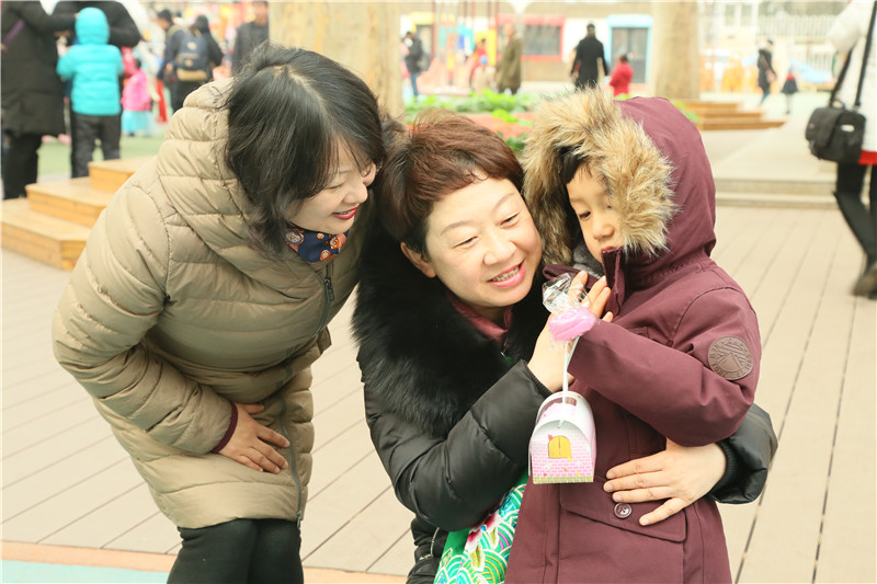一早,黄珊总园长和校本部园杜军园长就来到院子里,跟老师们一起,用温暖的笑容、美好的祝福迎接家长和孩子们的到来。