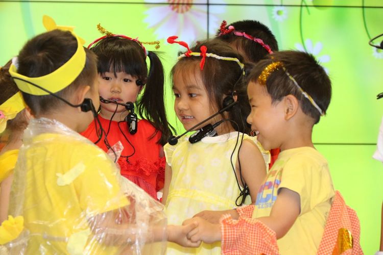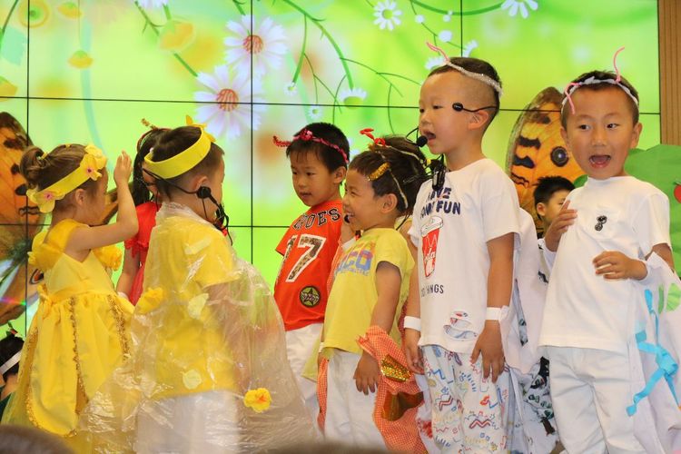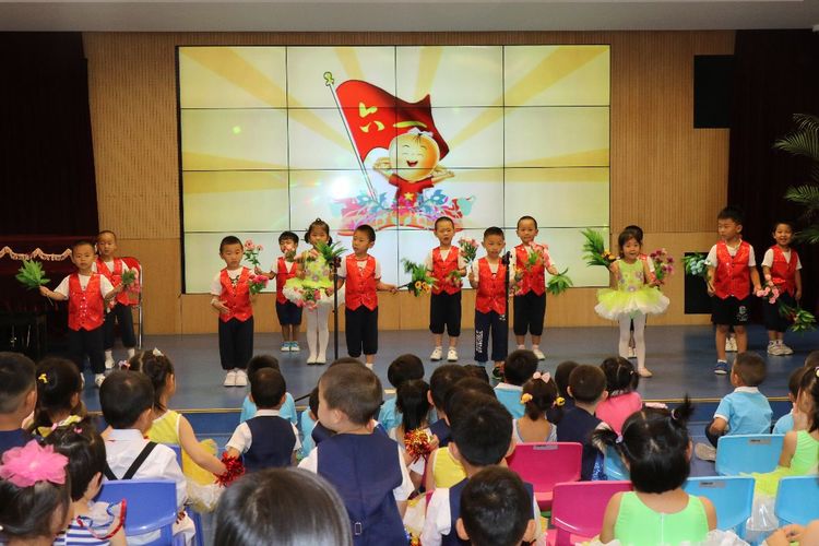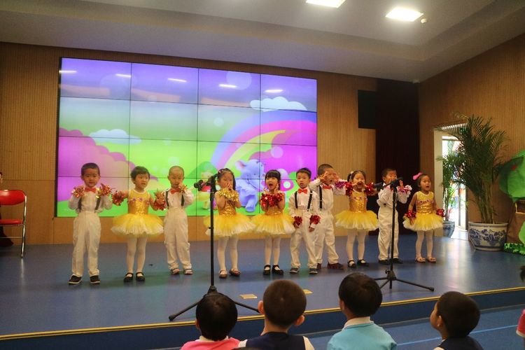 开场歌舞《快乐的六一》,是孩子们心情的表达,小五班小朋友们手舞着鲜花,用自己的歌声,快乐的舞步,引起全场小朋友的合唱共鸣。