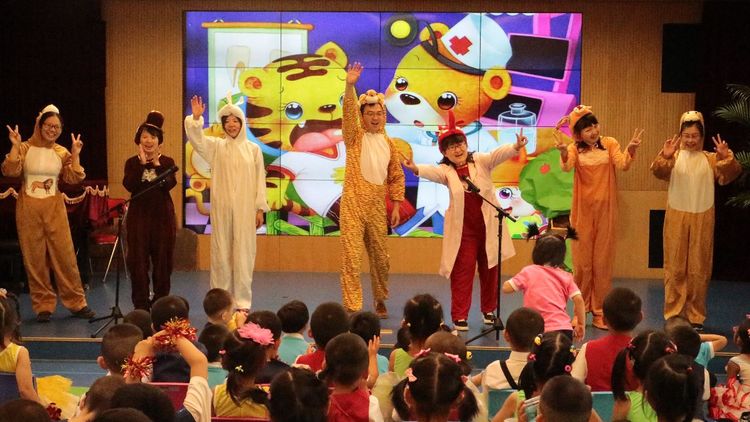 小班组的爸爸妈妈们也为小朋友带来了精彩的童话剧表演《老虎拔牙》。