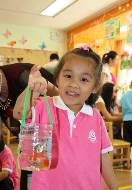 这是我自己做的水桶捞的小鱼哦,回家我要好好照顾她~