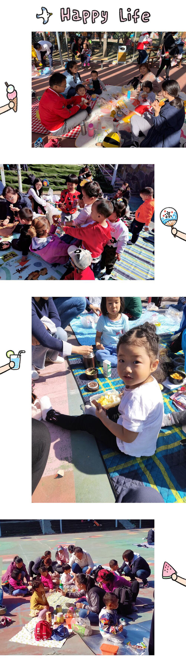 九游每个班级围坐在一起,分享着九游带来的美食,九游一家人说说笑笑,回味着一上午的趣味游戏,计划着九游接下来期待已久的动物园之旅。